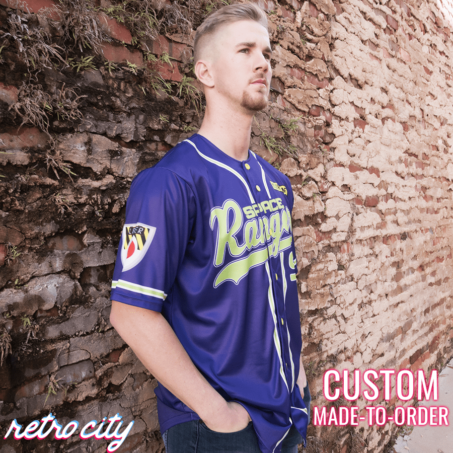 Space Rangers Full-Button Baseball Jersey (Purple)