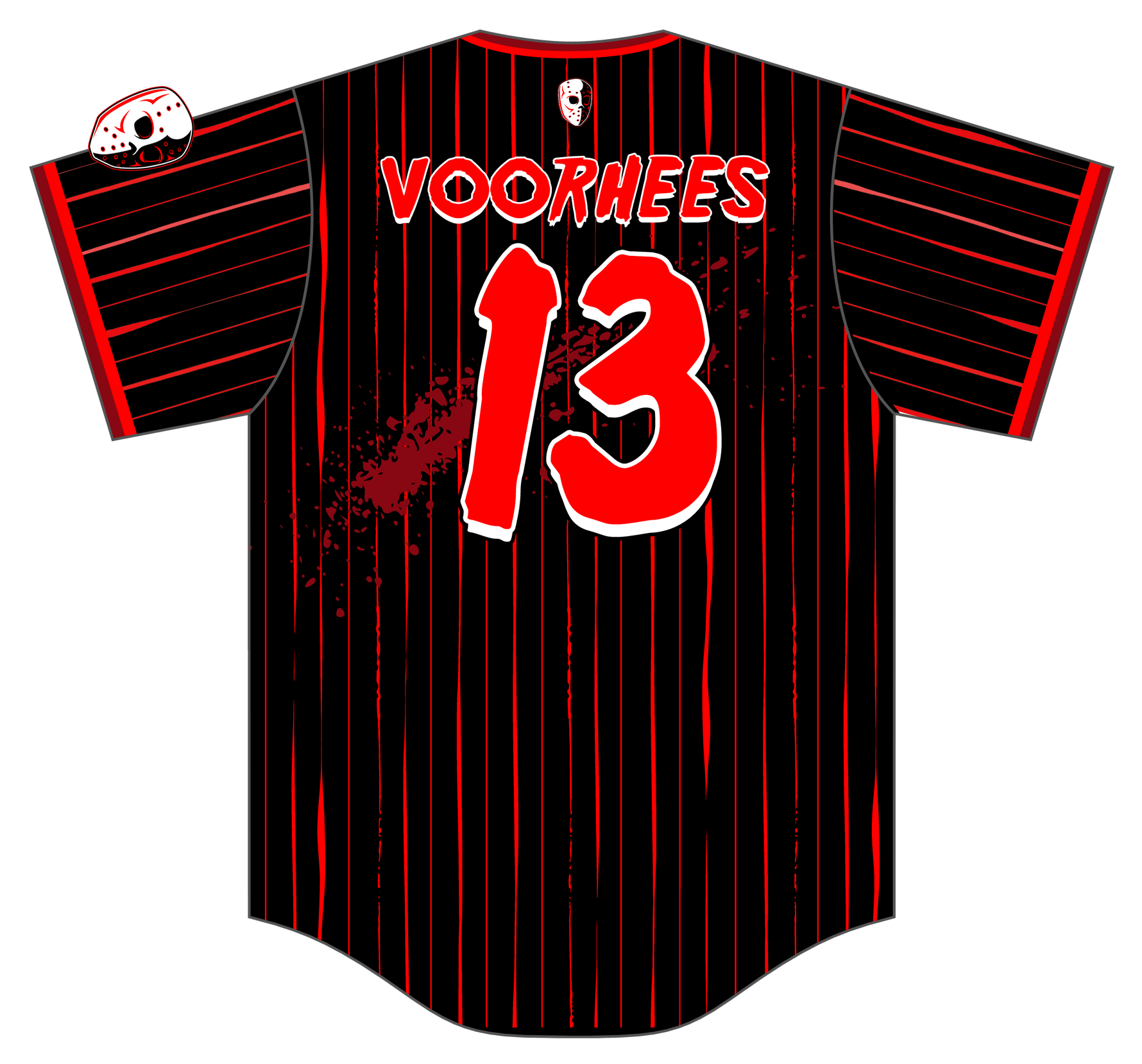Step up to the plate — if you dare — with our Camp Crystal Lake Baseball Jersey, inspired by the legendary slasher himself, Jason Voorhees. Featuring blood-red pinstripes and eerie detailing, this killer jersey is a must-have for horror fans. Perfect for game day or fright night, it’s scary how good you’ll look. 🔪⚾🩸